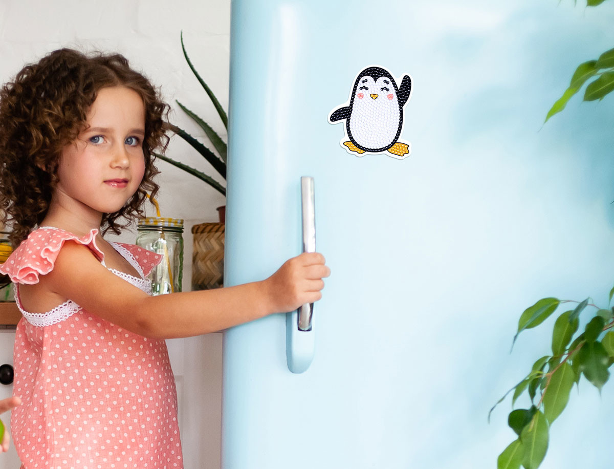 Кристальная ( алмазная) мозаика " ФРЕЯ" ALVM- 075 магнит " Пингвиненок" 8 х 8. 5 см