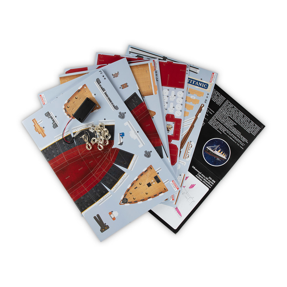 Легендарный лайнер " Титаник" - британский трансатланический пароход. В свой первый и единственный рейс отправился 10 апреля 1912 года. В ночь с 14 на 15 апреля лайнер на максимальной скорости столкнулся с айсбергом, получил пробоину в правом борту и затонул, унеся жизни 1500 человек. Модель с LED- подсветкой. Сборка корабля займет около 4- х часов. Рекомендуемый возраст 14+ Масштаб модели 1: 95Увлекательное занятие не только для детей, но и для взрослых! Для сборки модели не требуются ножницы и клей. Инструкция ( PDF) Сообщить о неточности в описании